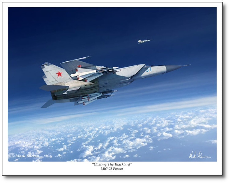 This artwork is a tribute to the incredible MiG-25 and the pilots who flew it "Chasing The Blackbird".
